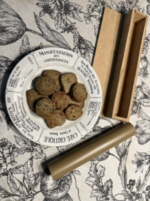 全てフードプロセッサーにかけてラップで包んで型に入れて冷蔵庫で冷やします。固くなったら7、8ミリに切って170度で20分焼きます。丸い筒はchatgptに聞いたらセリアに売ってますと教えてくれました。四角の型は無いそうなので自作です。